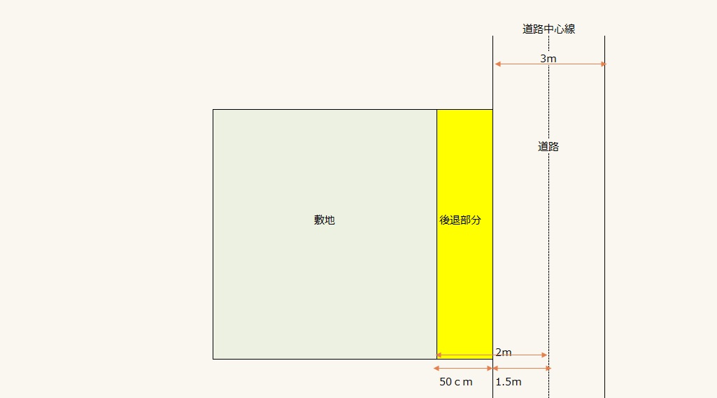 この場合、道路の中心線から2メートル下がった線が道路の境界線とみなされ、敷地の一部が道路部分とみなされます(いわゆるセットバック部分)。